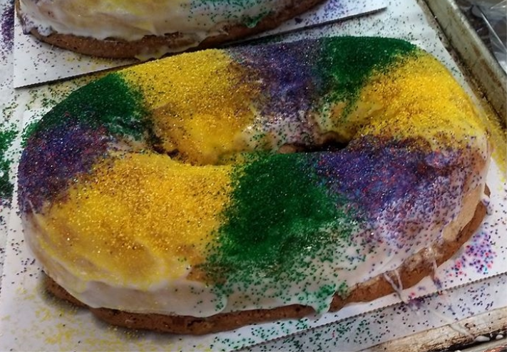 King Cakes, Fridays between January 6 (Three Kings Day) and Mardi Gras February 17. Always smart to pre-order King Cakes. We sell them whole or as half or quarter cakes.