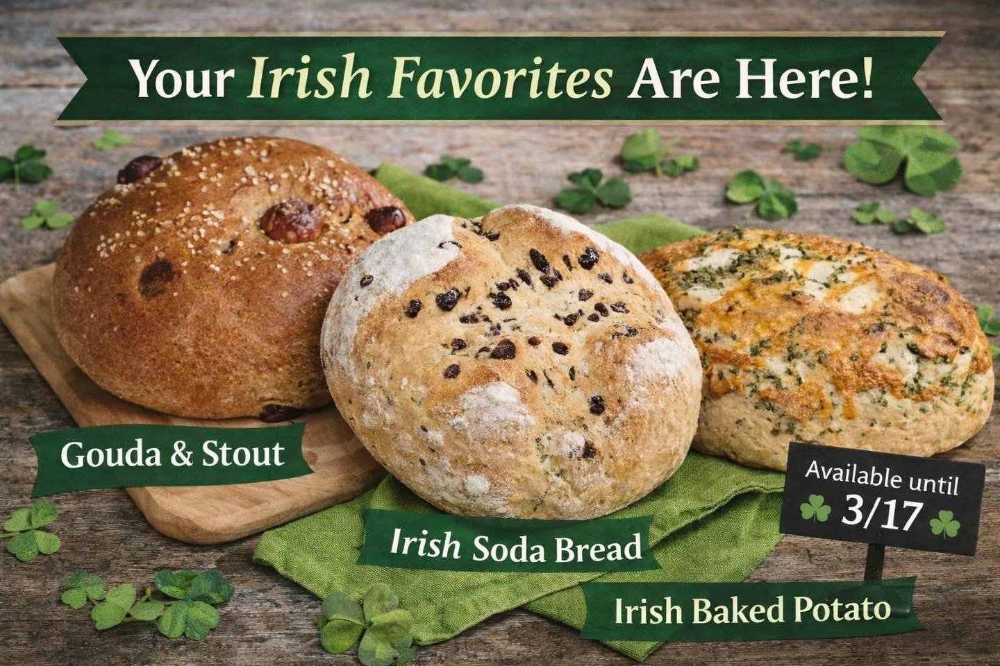 Snickerdoodle, Chocolate Chip, Salted Caramel, Frosted Sugar, Seasonal Decorated Cookie, Irish Potato Bread, Irish Soda Bread